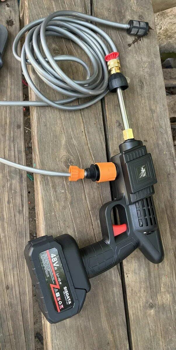 Solo conecta la manguera, coloca la batería y empieza a limpiar.