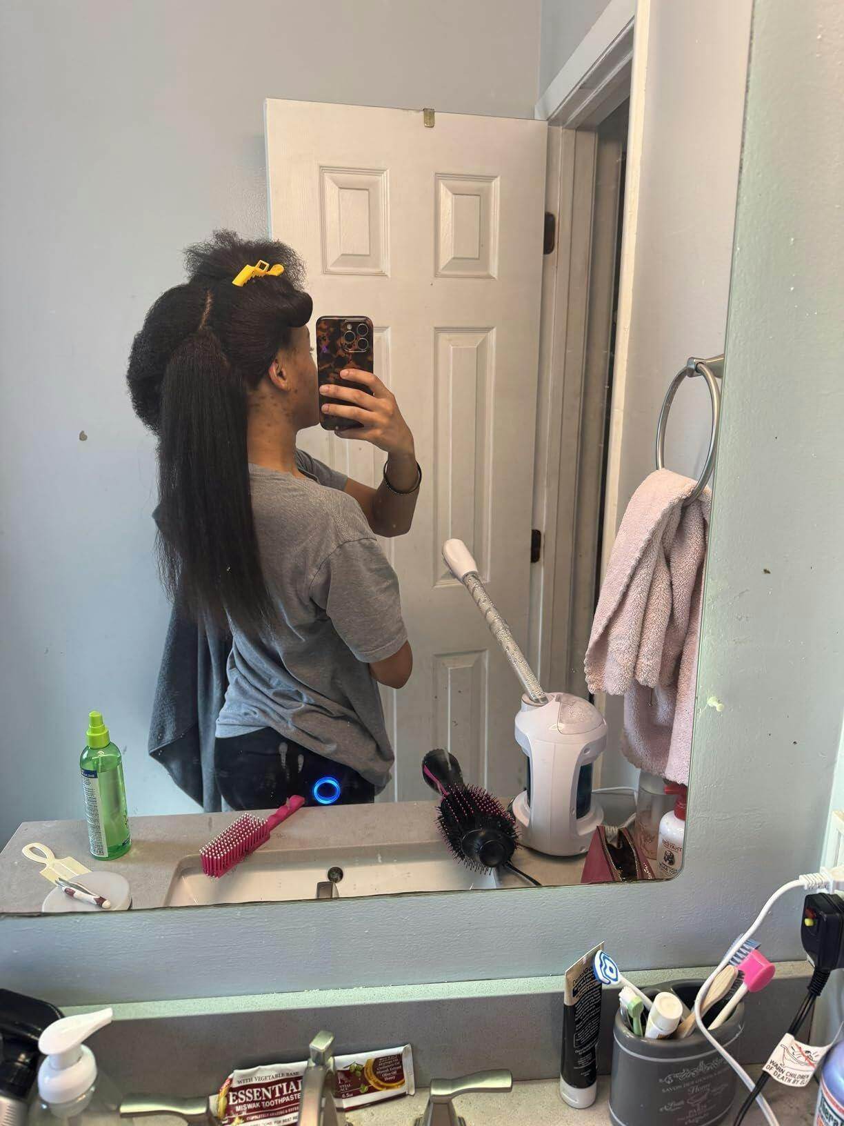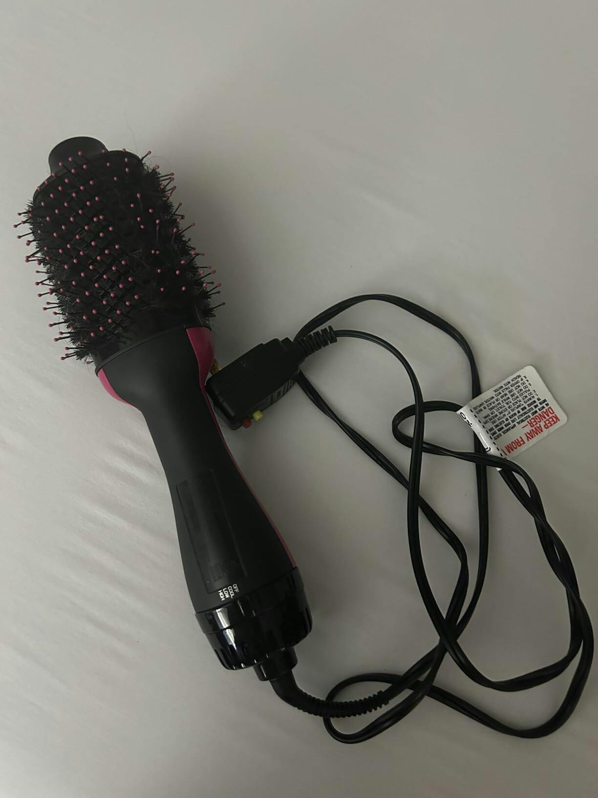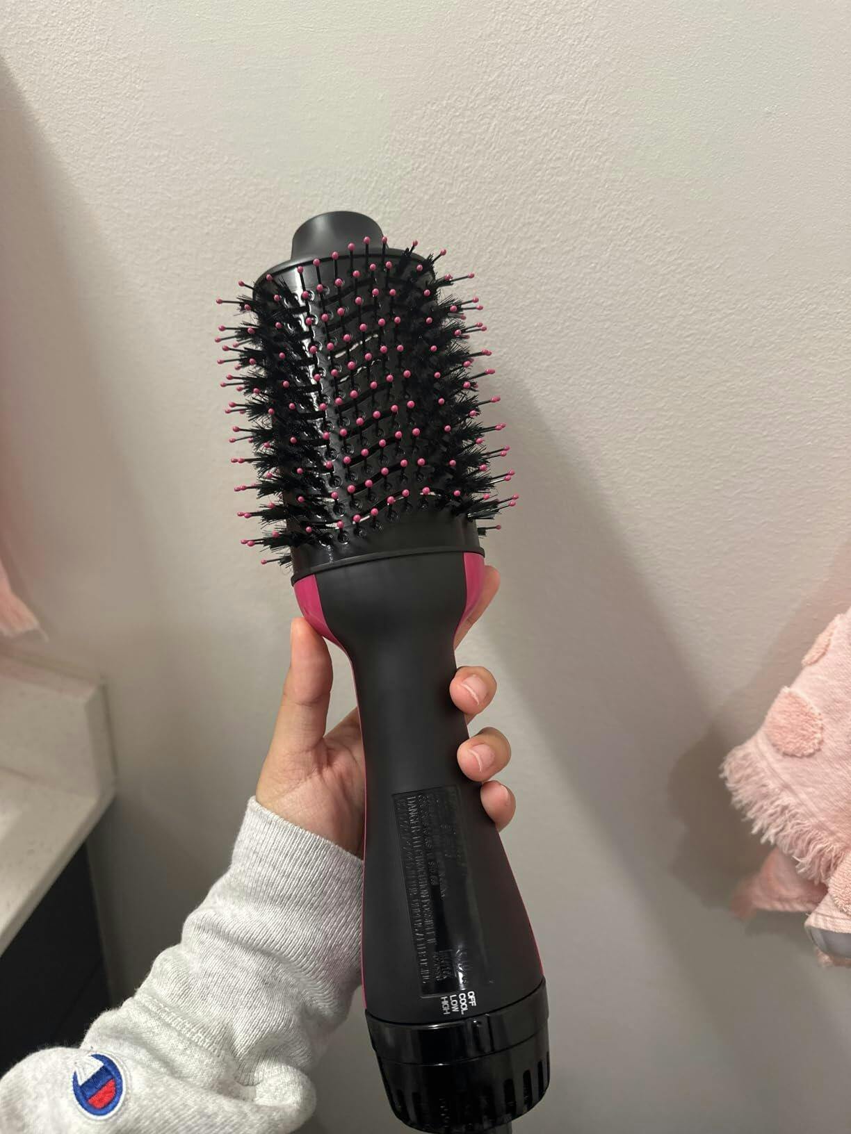 Primero que nada, tengo el cabello asiático muy liso, así que me cuesta mucho rizarlo. Noté que mi cabello se ve mejor si lo dejo liso, pero el dilema que tengo es que, como es tan grueso, tarda unas horas en secarse naturalmente. Tengo mucho cuidado de no dañar mi cabello peinándolo cuando está mojado. Aun así, quería comprar un producto que me ayudara a que mi cabello se vea como si viniera de la peluquería. Muchas veces voy corriendo a una reunión a las 7:30 a. m. y mi cabello todavía está mojado y simplemente no se ve igual que si lo hubiera secado con secador o peinado. Les digo que este cepillo es increíble. Puede que no puedan verlo en las fotos, pero mi cabello está brillante y lustroso, y me veo extremadamente bien arreglada y pulida. Para evitar que se rompa, sostengo mi cabello desde la raíz, lo pongo en una configuración baja y luego paso el cepillo por mi cabello. No lo pongo en la configuración alta porque noto que se calienta mucho. Mi amiga es peluquera y me dijo que es mejor pasar la plancha o el secador varias veces por el pelo, pero rápido que muy despacio y con mucha potencia. Tengo que pasarme el cepillo más veces cuando uso la potencia baja, pero creo que es muy importante para evitar dañarlo. Sé que algunas personas dicen que se les engancha el pelo en las cerdas, pero no me pasó a mí. De nuevo, me agarro el pelo desde la raíz y luego lo cepillo por el resto. Me alegro mucho de haber comprado este cepillo porque ahora tengo un aspecto más sofisticado.